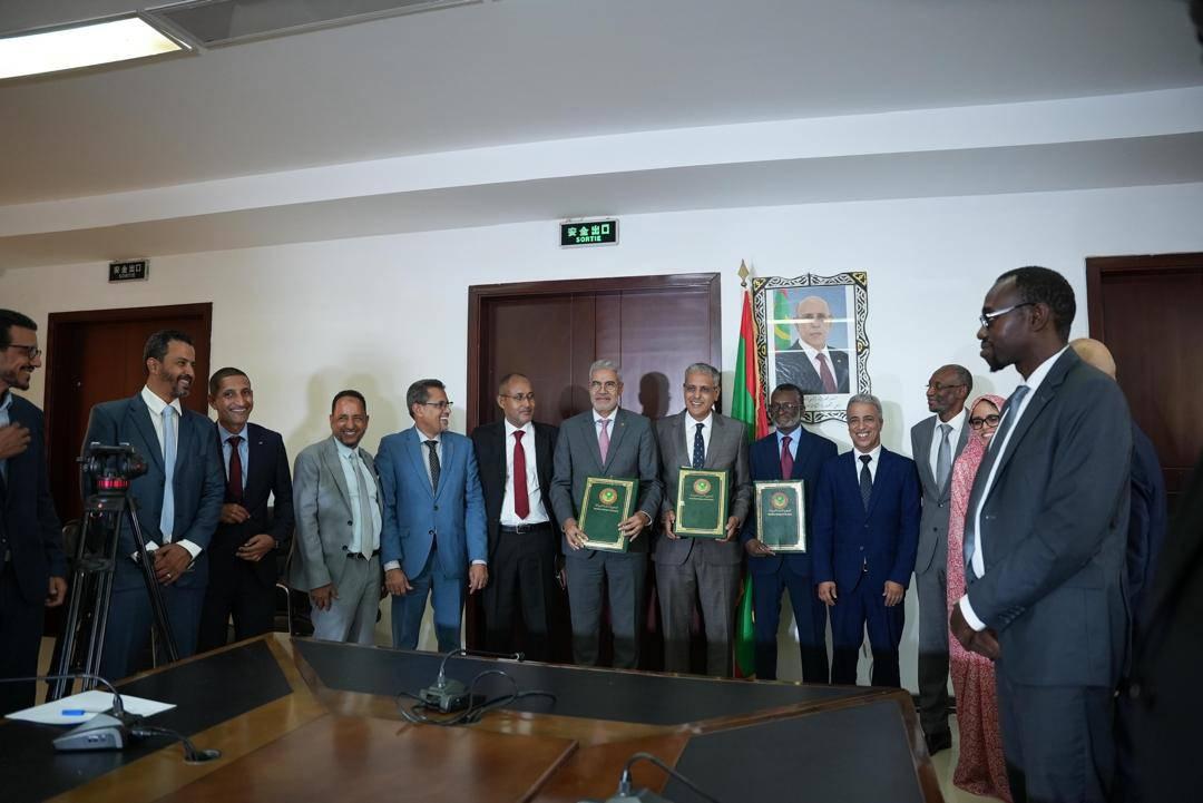 12 septembre 2025, Nouakchott – Son Excellence Monsieur Sid’Ahmed Ould Bouh, Ministre de l'Économie et des Finances, et Son Excellence Monsieur Mohamed Ould Khaled, Ministre de l'Énergie et du Pétrole, ont signé deux contrats de partenariat public-privé (PPP) dans le domaine de la production et de la commercialisation d'électricité.