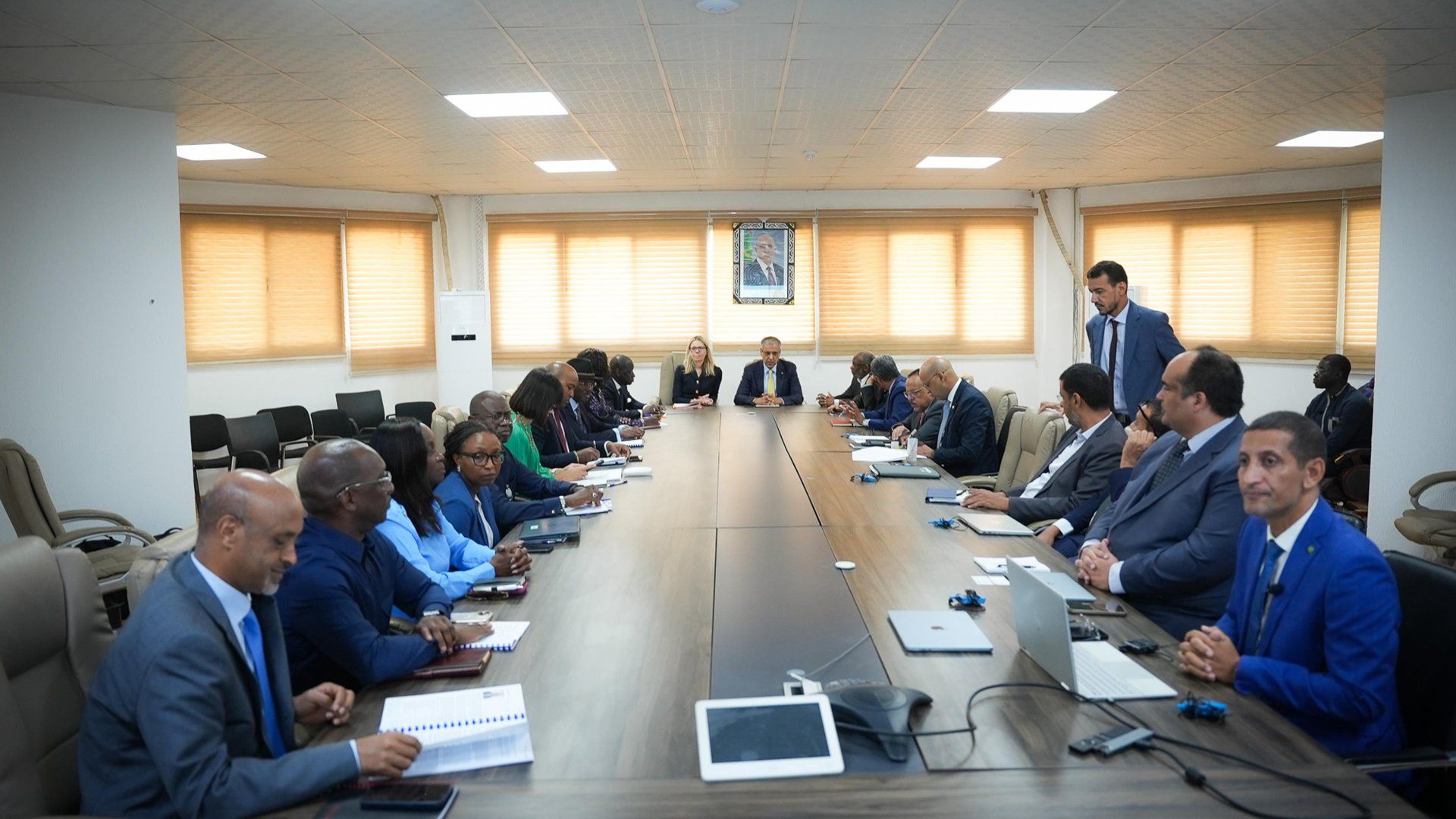 وفي مستهل الاجتماع، رحّب معالي الوزير بالوفد، مثمّناً علاقات الشراكة والتعاون التي تجمع موريتانيا بالبنك الدولي، ومؤكداً حرص القطاع على تعزيز هذه الشراكة بما يخدم أولويات التنمية الوطنية. واستعرض معاليه رؤية القطاع في مجال إصلاح وتطوير المنظومة الكهربائية، مبرزاً المشاريع الكبرى الجاري تنفيذها تماشياً مع برنامج فخامة رئيس الجمهورية السيد محمد ولد الشيخ الغزواني، وتنفيذاً لسياسات الحكومة الرامية إلى تحقيق التنمية الشاملة وتلبية الطلب المتزايد على الطاقة.