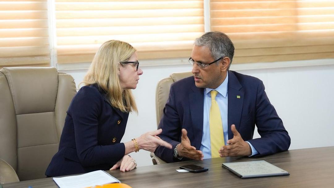 احتضنت قاعة الاجتماعات بوزارة الطاقة والنفط، صباح اليوم، اجتماعاً موسعاً برئاسة معالي وزير الطاقة والنفط السيد محمد ولد خالد، وبمشاركة بعثة رفيعة المستوى من البنك الدولي تقودها السيدة آنا بيردي، المديرة العامة للعمليات بالبنك، التي تقوم حالياً بزيارة عمل لموريتانيا لبحث مستوى تقدم المشاريع المشتركة بين الجانبين.
