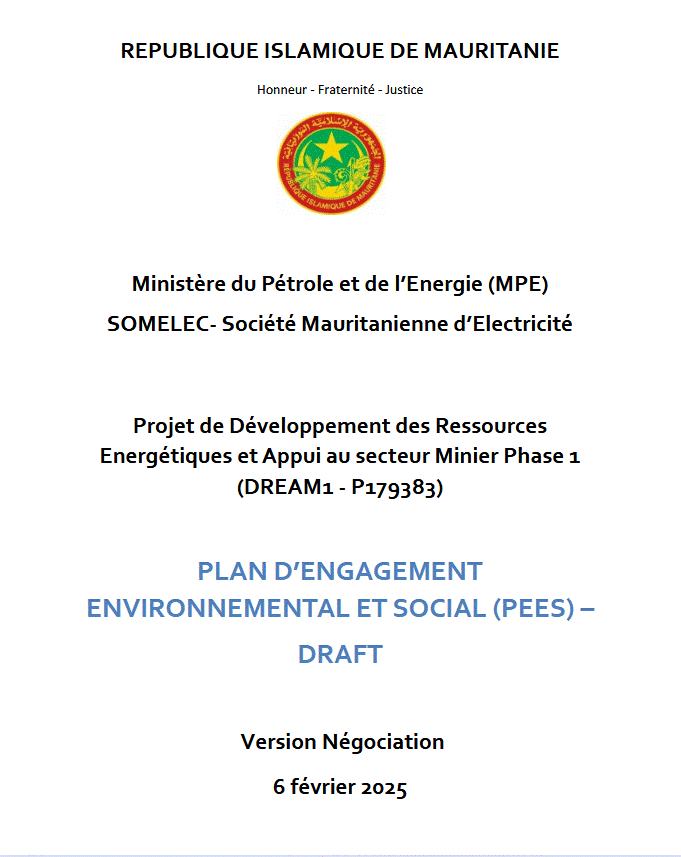 Mar 06 / التعليقات Projet de Développement des Ressources Energétiques et Appui au secteur Minier Phase 1 (DREAM1 - P179383) جمعة, 2026/03/06 - 10:57